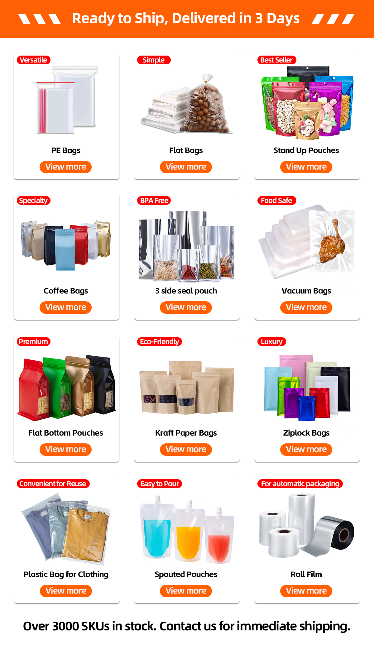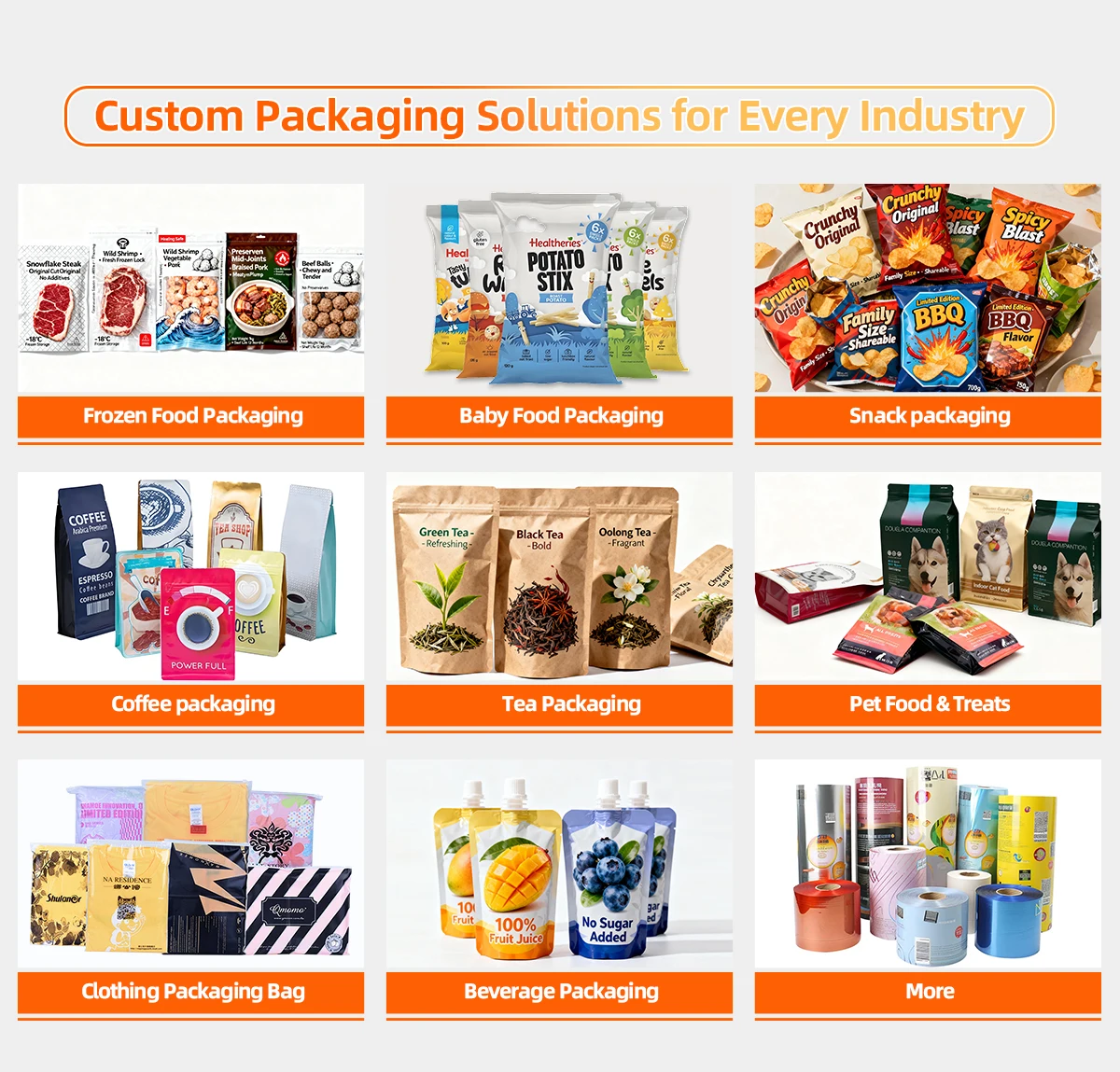주요 제품:스탠드 업 파우치, 진공 실러 가방, 지플록 가방, 크래프트 종이 가방, 플랫 하단 파우치